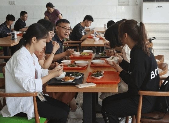 为深入了解新生近期的生活学习情况,9月16日中午,管理学院党委书记蔡若愚,辅导员孙杉带领部分新生走进餐厅,共进午餐。