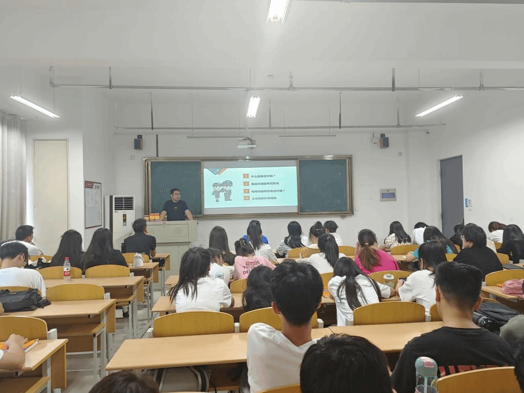 张增林通过PPT演讲的形式介绍了什么是电信诈骗、电信诈骗的常见形式、如何识别防范电信诈骗及上当后的补救措施,让同学们理解提高自我防范意识的重要性。针对大学生最常见的“刷单”诈骗,张增林以案示警,分析指出诈骗分子正是抓住了大学生思想单纯、社会阅历浅、防范意识低等特点而开展作案。最后,张增林亲自演示防诈骗的过程,告知大家被诈骗后如何及时补救,提示同学们遇到诈骗不要慌,要冷静判断。倘若遇到骗局,要做到“不理睬、不轻信、不转账、不汇款”,时刻保持警惕意识,自觉形成防诈骗意识,学习防范方法和技巧。