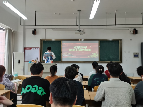 各班级就相关宣传单页向同学们介绍应征入伍的兵种,及埇桥区相关政策,简述应征入伍于广大青年大学生、于国防建设的意义,为同学们科普介绍国家及政府在此方面相关的支持政策,对个人生涯发展的帮助,充分调动同学们报名应征的积极性。班会中,班委向同学们发放相关宣传单页,同学们积极了解国家相关政策及应征入伍的相关情况。同学们也积极表示,党和国家为我们创造了今天的幸福生活,应当用自己的力量为祖国明天的发展和安全作出贡献。