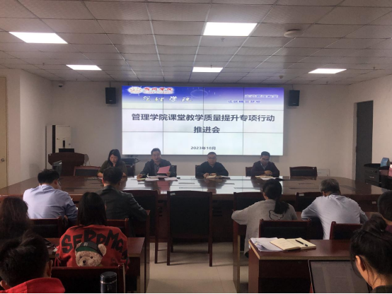 为贯彻落实学校课堂教学质量提升专项行动部署要求,深化学院教育教学改革,发挥好课堂教学的人才培养主渠道、主阵地、主战场作用,切实提高课堂教学质量和育人水平,根据《宿州学院课堂教学质量提升专项行动方案》(院教字〔2023〕36号)文件精神,管理学院于2023年10月11日下午,在实习实训楼C301会议室召开了课堂教学质量提升专项行动推进会,学院领导及全体教师参加了会议,会议由院长韩传龙主持。