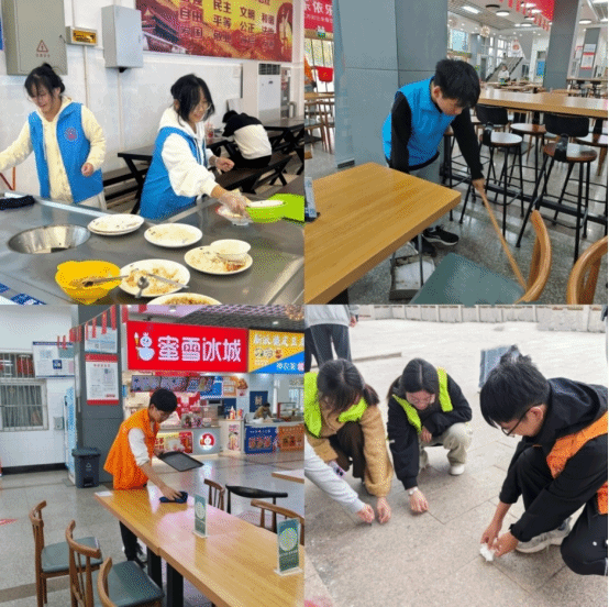 本次志愿活动围绕“共创美丽校园,体验劳动魅力”的主题展开,劳动重点是对田径场角落垃圾的清理、珍珠湖岸的守护以及食堂餐桌卫生的打扫。活动开始前,班级志愿者们身穿志愿服,在指定地点进行集合签到,分别前往田径场、珍珠湖和食堂进行校园守护者活动。活动过程中,志愿者们分工明确、配合默契,仔细清理田径场角落里、珍珠湖畔的垃圾,认真打扫了食堂的用餐区域。整场活动中,同学们齐心协力、目标清晰、井然有序,志愿者们在欢声笑语中完成了此次校园守护者活动。