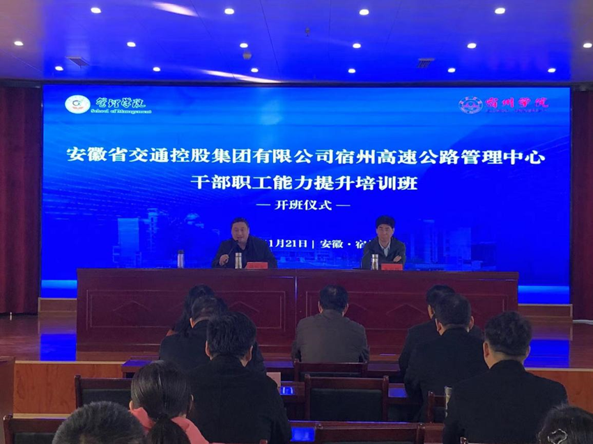 安徽省交通控股集团有限公司宿州高速公路管理中心(简称“宿州中心”)干部职工能力提升培训班由继续教育学院协调组织,管理学院具体承办,宿州中心中层干部、管理岗位人员、收费班长等100余人参加培训,分两期开展。