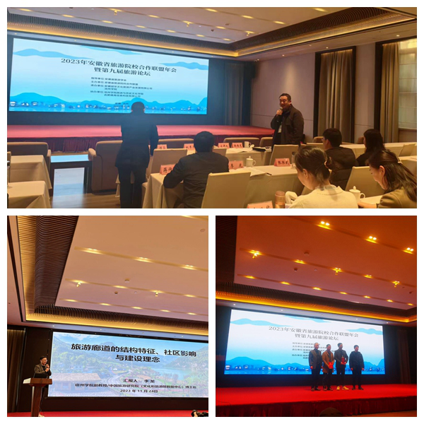 11月23日-11月25日,由安徽省旅游学会指导,安徽省旅游院校合作联盟主办,池州学院旅游与历史文化学院承办的2023年安徽省旅游院校合作联盟年会暨第九届旅游论坛在池州召开。我院管理学院院长韩传龙、教学副院长宋徽、旅游管理教研室主任李小芳和旅游管理专业教师李龙博士应邀参加。本次年会的主题是“文旅融合背景下安徽旅游高质量发展”,议程分主旨演讲、分论坛讨论、论文评选和专业实践等几个阶段。