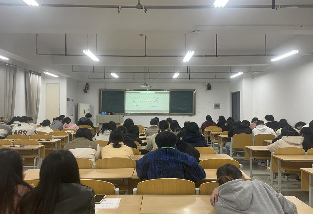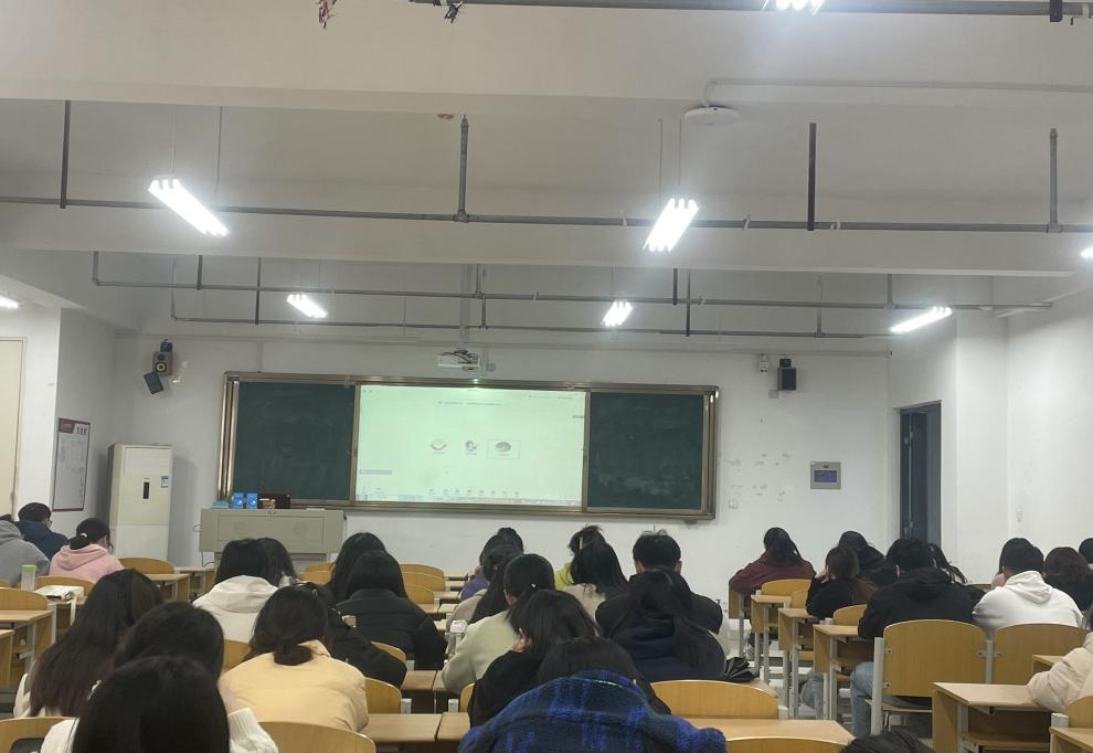 随后,3名优秀毕业生依次分享了他们在考研路上的心得和经验。王晶晶从宏观层面分析考研的备考时间线,分享了不同阶段的备考重点和心态调整秘诀,引导同学们对于考研备考有一个清晰的认知。张雪晴认为功夫在平时,考研的成功和大学四年的扎实学习密不可分,通过PPT展示她自己的考研备考时间线、考研资料等,详细讲解了英语、政治和专业课的学习方法和经验。华其运强调考研专业的选择,多搜集一些资料,可以关注其录取名额与专业课难度,呼吁大家在择校时认真思考选择。最后是互动交流环节。同学们踊跃提问,学长学姐们逐一给与细致解答,现场气氛热烈。