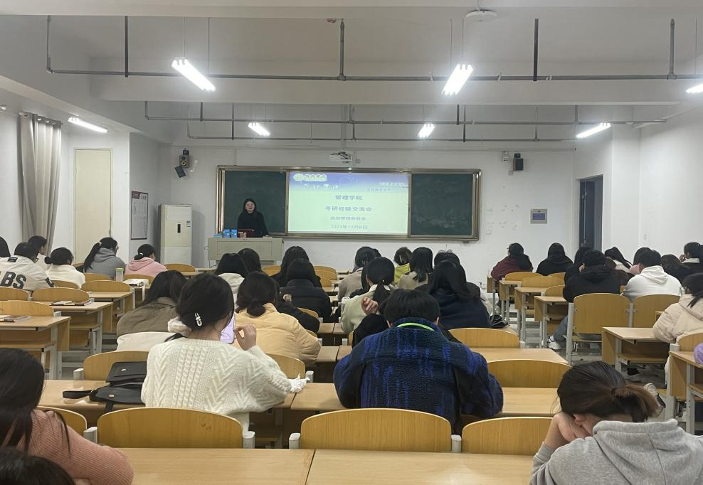 为了进一步激发我院学生的考研热情,加强学生对考研的认识和了解,营造积极向上的学风,按照学院统一部署,2023年12月8日,管理学院旅游管理教研室在实训楼c楼105教室举行优秀学生考研分享交流会。本次交流会由教研室副主任朱述美老师担任主持人,邀请3名往届考研学生代表,向旅游、酒店管理专业在校学生分享考研经验。