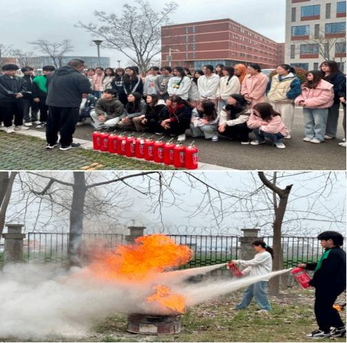 消防演练环节,蔡春早向同学们详细讲解了消防灭火器材的正确使用方法、操作程序和注意事项,并让同学们现场操作演练,对同学们实操过程中出现的问题及时加以纠正和指导。