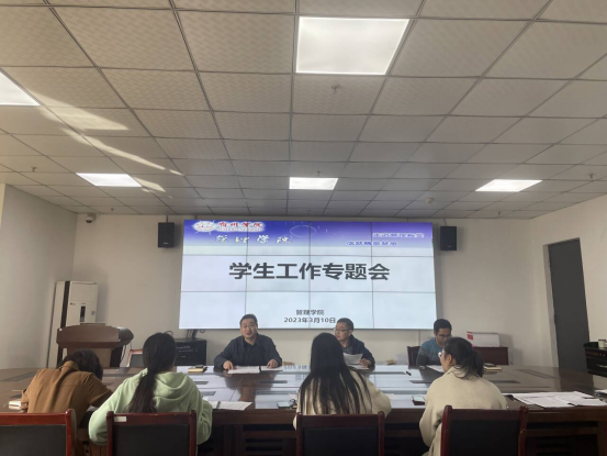 为深入贯彻落实立德树人根本任务,推动构建“大思政”格局,着力培养担当民族复兴大任的时代新人,2023年3月10日,学院召开学生思想政治工作专题会议。学院党委书记蔡若愚、院长韩传龙及全体辅导员老师出席会议,会议由院党委副书记张增林主持。