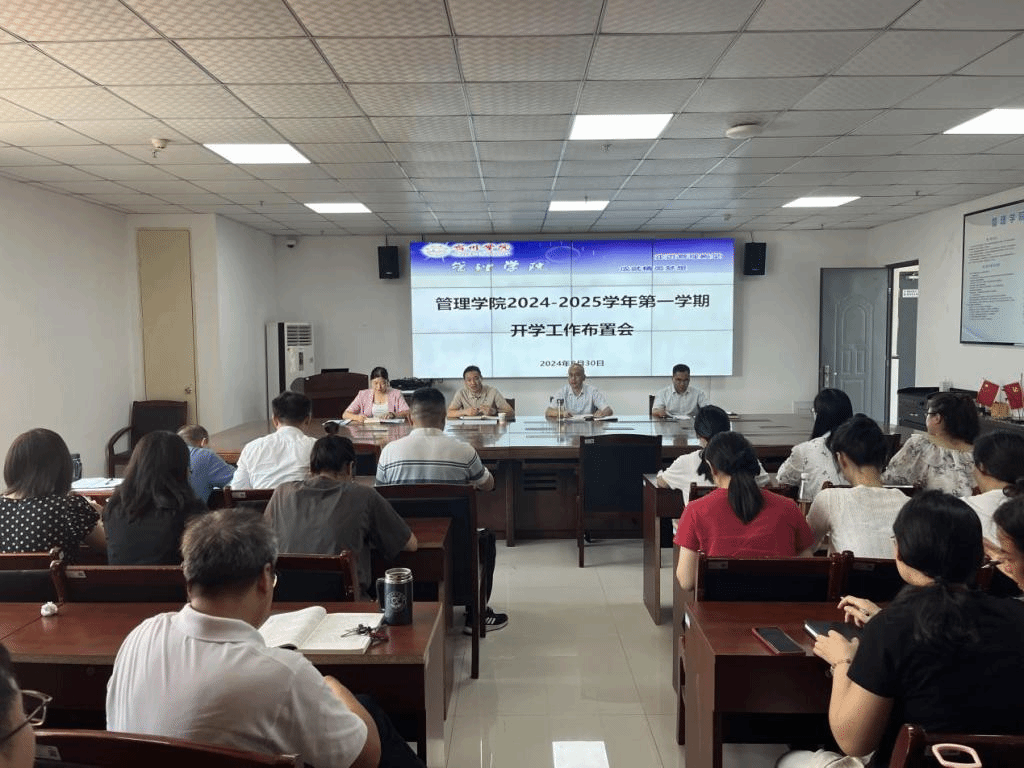 为全力保障开学工作平稳有序开展,提前谋划学院新学期各项工作,8月30日上午,管理学院在实习实训楼C301会议室召开了2024-2025学年第一学期开学工作布置会,院党委书记王北阳,党委副书记、院长韩传龙,党委副书记、纪委书记张增林,副院长(教学)宋徽及全院教师参加,会议由韩传龙主持。