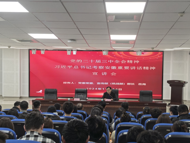 11月14日下午,校党委常委、宣传部部长岳尧到管理学院宣讲党的二十届三中全会精神和习近平总书记考察安徽重要讲话精神。管理学院党委副书记、院长韩传龙主持报告会。