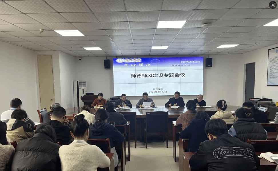 2025年3月12日,管理学院在教育园区实训楼C301召开师德师风建设专题会。院党委副书记、院长韩传龙,正处级组织员张持堂,院党委副书记、纪委书记张增林,副院长宋徽,副院长周冲及学院全体教师参加,会议由张增林主持。