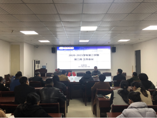 2021年3月17日我院在东区实训楼C301召开第二周院例会,学院全院教师参加,会议由副院长韩传龙主持。