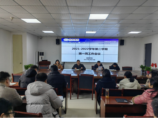 2022年2月23日,管理学院在教育园区实训楼C301召开2021-2022学年第二学期第一周教学工作例会。院党委书记蔡若愚,院党委副书记、院长韩传龙,副院长(教学)宋徽,院党委副书记张增林及全院教师参加,会议由韩传龙主持。