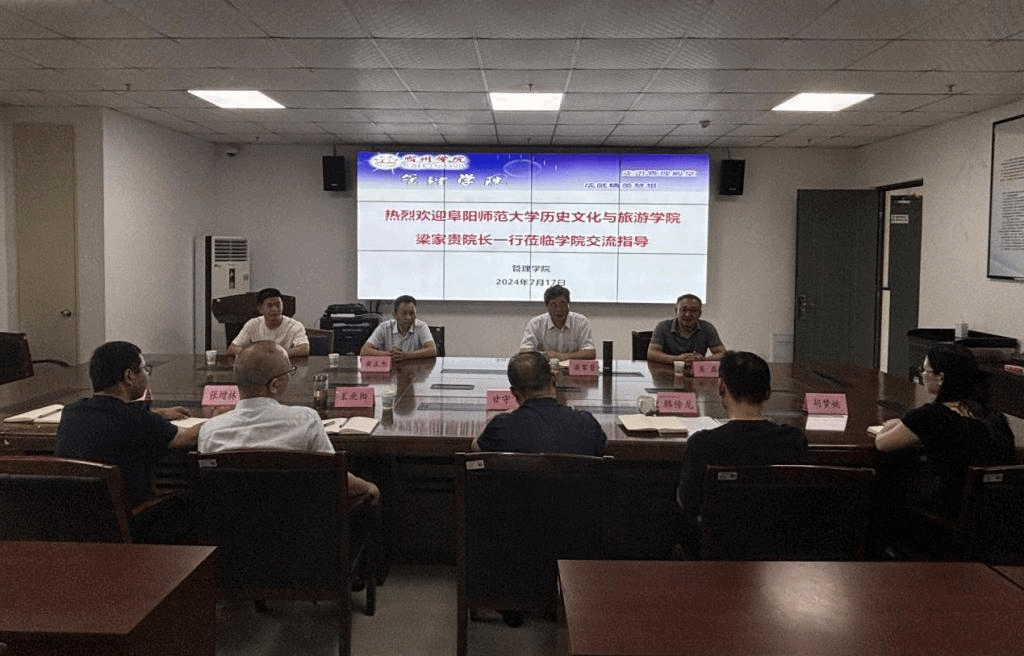 7月17日上午,阜阳师范大学历史文化与旅游学院梁家贵院长一行到管理学院调研交流,我校学工部主要负责人、管理学院领导班子及相关人员参加交流座谈会,会议由管理学院党委副书记、院长韩传龙主持。