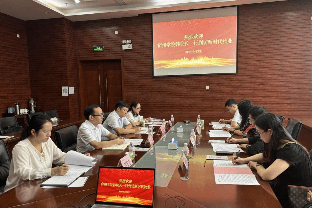 为进一步深化产教融合,拓展校企合作,管理学院院长韩传龙一行应邀赴安徽建工集团新时代物业公司考察调研,洽谈校企合作。安徽建工集团新时代物业公司党委书记、总经理龙海健、副总经理胡海涛等人热情接待。