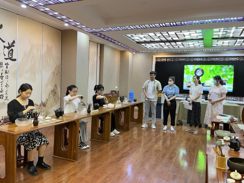 2022年6月3日—4日,在实习实训楼C403举行了“茶艺大赛”,李龙、蔡雪洁、杨晶、傅青钰出席本次茶艺大赛的评委。本次茶艺技能大赛为团队参赛,4人组队,其中3人展示茶艺,1人进行解说。伴随着清雅的乐曲,选手们举止优雅,温具、置茶、冲泡、奉茶,一双双巧手在茶席间流转,淋漓尽致地展现着精妙茶艺,娴熟又温婉的创意茶艺表演,赢得在场观众的阵阵掌声。参赛选手依次参加了黄山毛峰、祁门红茶两类茶艺的展示比赛,考察学生对茶文化知识的了解、茶艺操作技能的规范性和熟练性、创新茶艺的设计和冲泡解说能力。评委根据参赛选手表演的创新性、仪容仪表、茶艺展示、茶汤质量和解说进行现场打分。