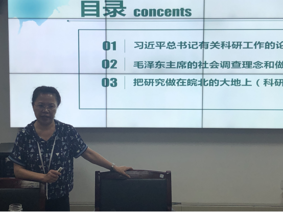 最后,吴玲教授以“把研究做在皖北的大地上(科研方法)”为主题和大家分享了提高科学研究水平的经验和心得。作为青年教师,也是青年学者,一定要做皖北大地称职的社会科学工作者。一要有先进的理论知识和理论功底,做皖北经济发展的引领者;二要熟悉皖北地方经济社会的发展,要知晓地方政府所思所想,做皖北经济发展的知情者;三要进行分析、研究,给出针对性、可行性的对策建议,做皖北经济发展的献计者。同时,各位老师在撰写课题申报书时,选题要植根皖北的发展,构思要精巧科学缜密,对策成果要针对可行。