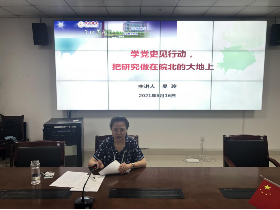 2021年6月16日下午,管理学院吴玲教授在实习实训楼C楼301会议室做了“学党史见行动,把研究做在皖北的大地上”专题讲座。讲座由副院长韩传龙教授主持,管理学院青年教师参加了本次活动。