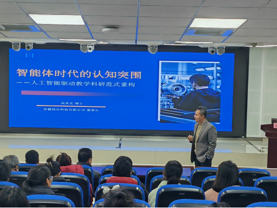 2025年3月5日下午,管理学院在实习实训楼C103报告厅成功举办“管理视界”系列讲座第一讲,特邀安徽栈谷科技有限公司董事长、密码学博士高承实为师生带来主题为“智能体时代的认知突围——人工智能驱动教学科研范式重构”的精彩报告。本次讲座由学院院长韩传龙主持,学院领导班子、全体教师及部分学生代表共同参加。