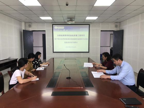 2020年5月26日上午,学院在实习实训楼C楼C310会议室组织召开省级质量工程项目暨新农科研究与改革实践项目任务书论证与研讨会,副院长韩传龙、教学科研秘书王徽、团总支书记高歌、专业课老师李小芳、胡梦姚和项目负责人李龙参加,院长吴玲主持。