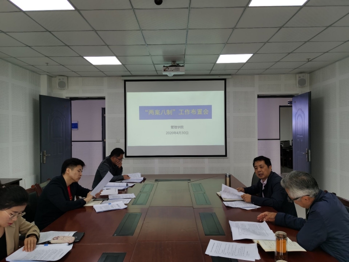 为了进一步做好新型冠状肺炎疫情的防控工作,阻断疫情在校园的蔓延,保证复学工作的顺利进行。4月30日,管理学院于实训楼C309召开了“两案八制”工作布置会,会议由党总支书记刘大为主持,党总支副书记王永宁及各班辅导员参加。