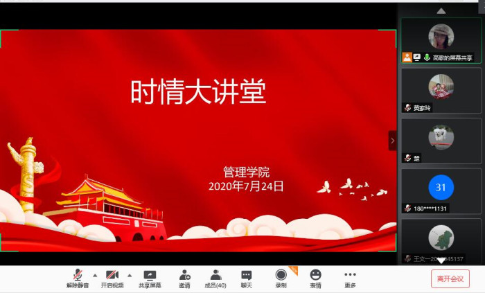 为贯彻落实习近平总书记在全国高校思想政治工作会议上的讲话精神和全国教育大会、新时代本科高校教育工作会议精神,围绕立德树人根本任务,管理学院于7月24日在线上举办了时情大讲堂,本次时情大讲堂主讲人为学院团总支书记高歌。