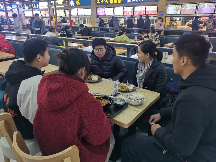 为进一步加强“四进四促”工作的落实,更好地了解学生会发展现状及学生干部对学院人才培养、学生管理、引导发展等方面的想法和建议。12月9日中午,管理学院党委秘书王淑霞、辅导员苏玉华同部分学生干部在二食堂共进午餐。