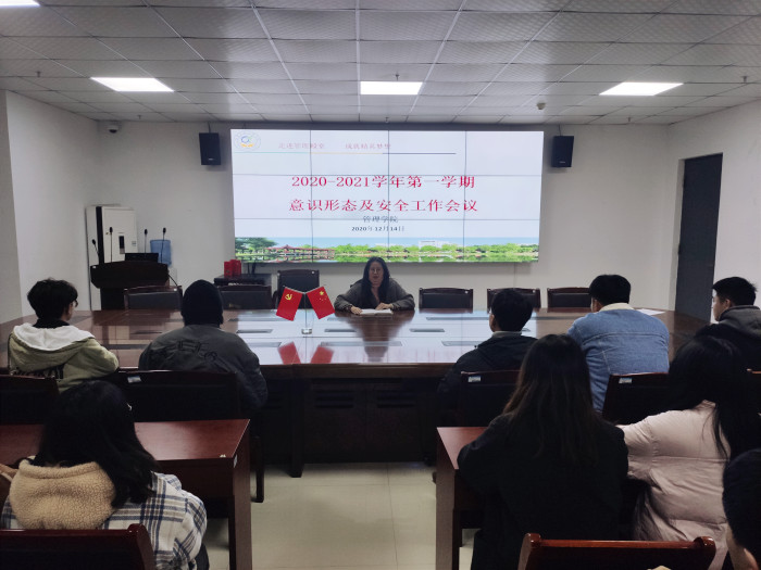 为深入贯彻落实学校以及学院关于意识形态和安全稳定工作的重要精神,进一步分析研判管理学院意识形态和安全稳定形势,安排布置下一阶段工作任务。12月14日中午1:00,管理学院于实训楼C301教室召开2020-2021学年度第一学期意识形态及安全工作会议。本次会议由团总支书记高歌主持,各班级安全信息员出席参与。