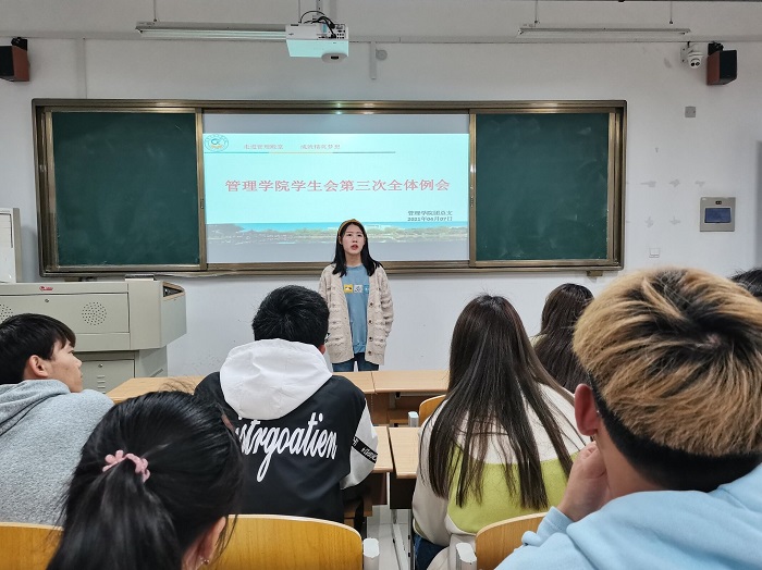 为明确部署下一阶段工作计划,提高学生会成员素质,规范工作作风,11月15日,管理学院于C113召开第三次学生会全体例会,本次会议由学生会主席祝慧敏、团总支副书记王彩虹主持召开,学生会全体成员参加。