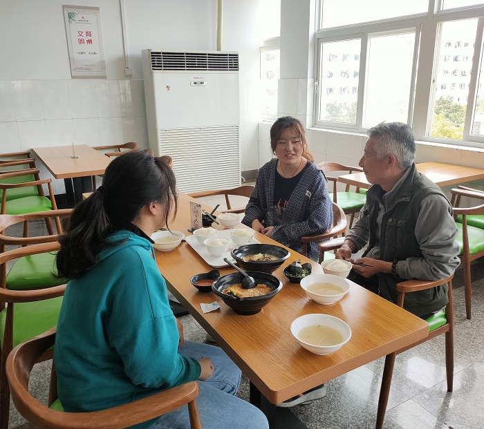 进餐期间,王永宁针对大学生普遍存在的心理问题以及毕业后的就业问题与学生们展开交流。期间,王永宁在就业方面提出:“适合”是最重要的原则,找准定位才能精准发力,最终实现预期目标。同学们纷纷表示赞同并表示在今后的发展道路中会选择适合自己发展的方向,找准目标,不断努力,不负学院以及父母的期望。在谈及大学生普遍存在的心理问题时,王永宁指出大学生存在的心理问题大部分都是在长期的成长过程中不断积累产生的,并且健康的心理品质是大学生全面发展的基本要求,同时他也表示心理健康这一方面学院尤其重视,也会尽全力为学生排忧解难,为学生正常的学习、生活开展提供确切的保障。