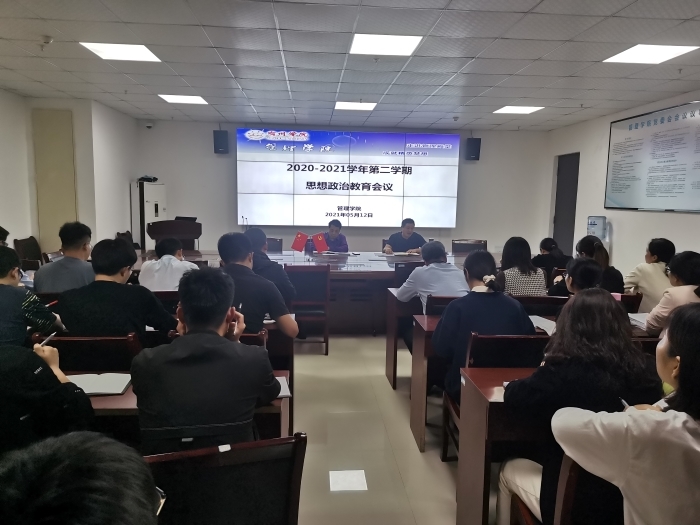 为强化思想引领,加强对学生思想政治方面的教育工作,5月12日,管理学院于C301召开2020-2021学年第二学期思想政治教育会议,本次会议由党委书记刘大为主持召开,副院长韩传龙及各班辅导员、学生干部出席本次会议。