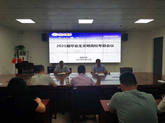 为确保2021届毕业生文明离校工作的顺利开展,6月25日,管理学院于实训楼C301会议室召开2021届毕业生文明离校专题会议。副院长韩传龙、学院党委副书记王永宁主持会议,毕业班辅导员参与会议。