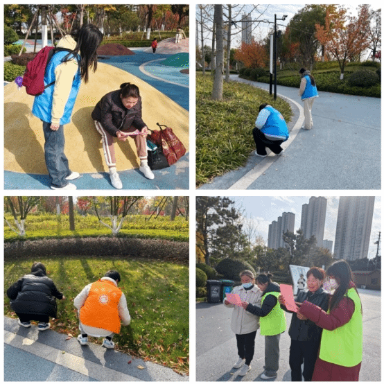 活动过程中,志愿者分工明确,仔细将公园草坪中的垃圾进行清理,并帮助环卫工人对社区垃圾进行整理分类。同时,志愿者们为社区的住户分发了保护环境的宣传单,并向社区居民宣传保护环境的重要性,他们用自己的实际行动为社区居民服务。