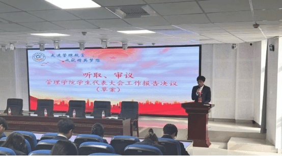 2023年11月15日下午13:00,宿州学院管理学院第五次学生代表大会在管理学院实训楼C103会议室举行。学院党委书记蔡若愚,党委副书记、院长韩传龙,党委副书记张增林,副院长宋徽出席本次大会,来自各班级、学生会、社团组织的50名正式代表、23名列席代表参加会议。大会由学院团委负责人孙杉主持。