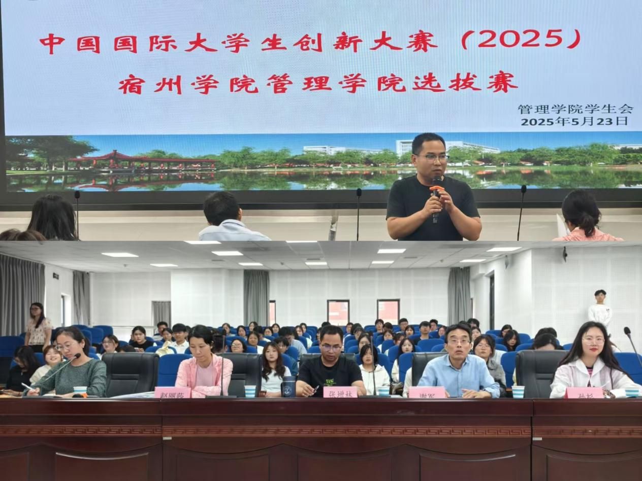 为进一步落实学校相关文件精神,培育大学生的创新创业能力,提升“中国国际大学生创新大赛”项目质量,管理学院于5月23日下午在实训楼C103举办中国国际大学生创新大赛(2025)院内选拔赛。本次选拔赛特邀商学院谢军博士、数统学院学生科科长赵丽莎、管理学院党委副书记张增林、分团委书记孙杉、科研秘书曾增担任评委,相关比赛负责人及各组参赛选手出席比赛现场。
