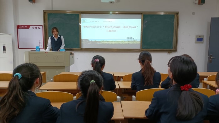 为大力弘扬劳模精神、劳动精神,引导全体师生树立辛勤劳动、诚实劳动、创造性劳动的理念,管理学院团总支积极响应学校组织劳动教育的部署和安排,认真贯彻落实“学校劳动宣传教育周”的开展,切实组织各班团支部开展相关活动。