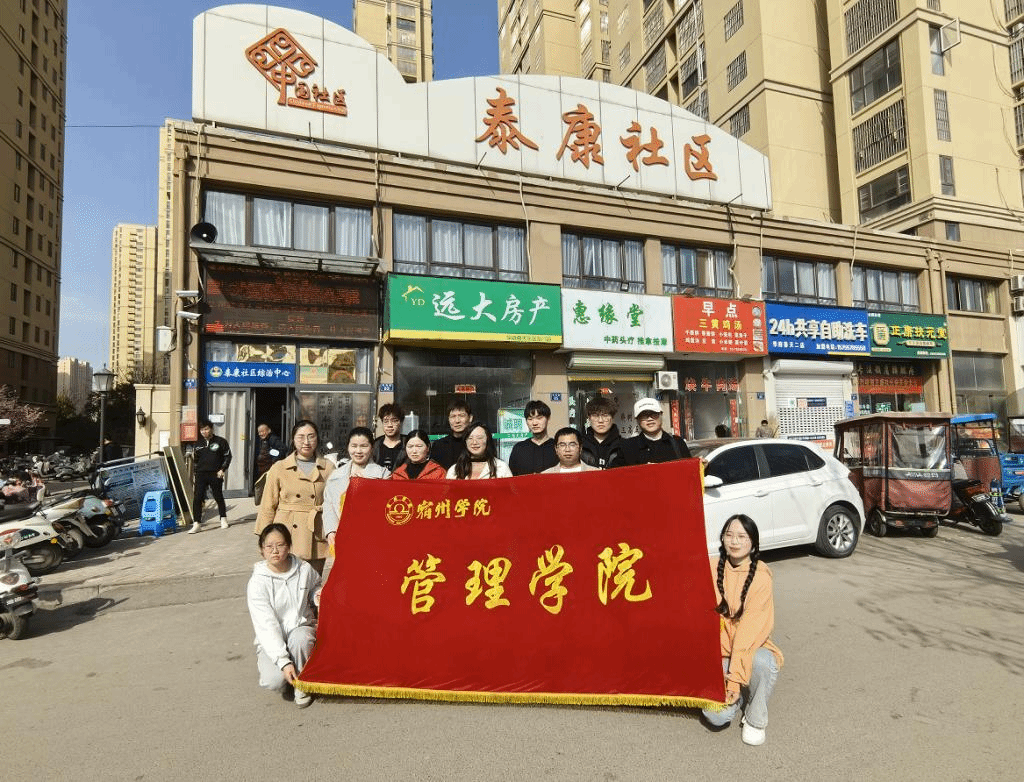 为了更好地开展大学生社区志愿服务工作,提高大学生志愿服务质量与水平,2024年3月22日上午,管理学院“大学生社区志愿服务”研讨会及“大学生志愿服务基地” 授牌仪式在沱河街道泰康社区顺利举行。宿州沱河街道泰康社区党总支书记李风波、负责社区宣传工作人员刘文静,居委会工作人员夏政,管理学院党委副书记张增林,旅游管理教师党支部书记李龙,分团委负责人孙杉及管理学院学生会代表共同参与活动。