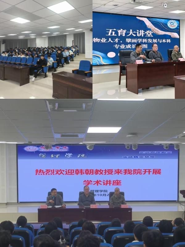 10月20日下午,管理学院在实训楼C103举办五育大讲堂暨“物业管理学科发展规划与本科教学思考”专题讲座,本次讲座特邀浙江树人大学韩朝教授担任主讲人,管理学院物业管理专业全体师生参加活动。活动由学院党委副书记、院长韩传龙主持。