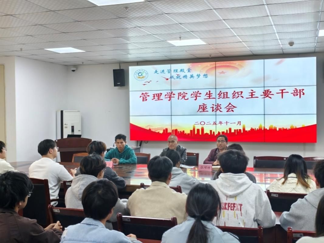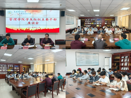 为进一步加强学生组织建设,提升学生干部的综合素质与工作能力,11月5日中午,管理学院在实训楼C301会议室召开了学生组织主要干部座谈会。会议由管理学院党委书记王北阳主持,党委副书记张增林、工程与物业管理学生党支部书记刘磊及学院各学生组织主要干部参加了此次座谈会。