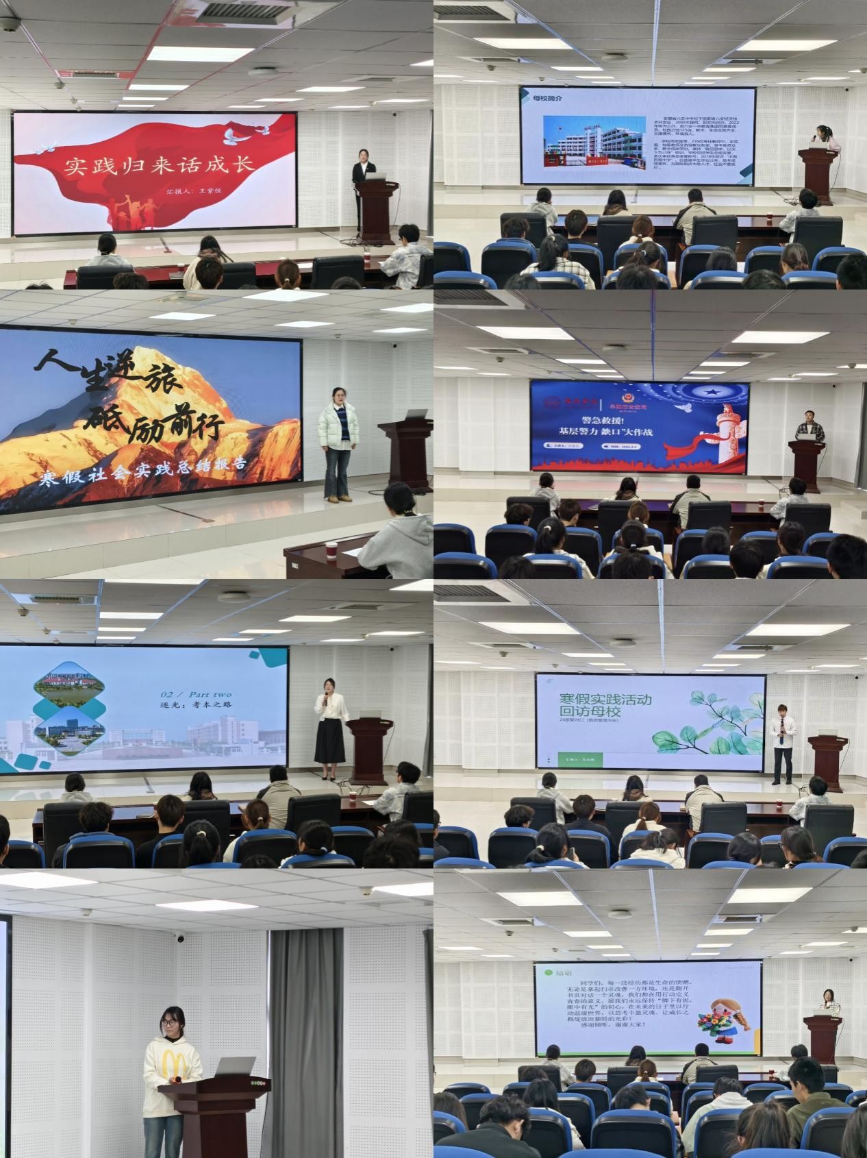 在寒假社会实践活动中,来自不同专业的8位同学依次登台,围绕家乡警力调研、社区志愿服务、优秀学子回访母校等丰富多样的寒假实践主题,结合亲身经历,以生动的语言、鲜活的事例、真挚的情感讲述实践过程中的所见所闻、所思所感,展现了大学生的责任与担当。