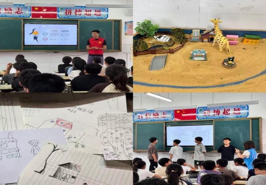 针对留守儿童情绪表达与心理健康需求,团队实施“调研诊断—精准干预—跟踪评估”三阶段工作模式,开设情绪课堂讲座,教授情绪识别与调节方法。通过“传递情绪”互动、沙盘疗法、“画房树人”等心理活动,孩子们学会了更好地理解自我、表达感受、接纳他人。多位学生表示,第一次感受到“有人认真听我说话”的温暖。