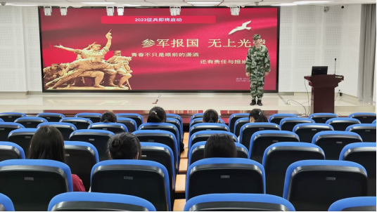 为了响应国家号召,鼓励大学生征兵入伍,让学生了解征兵入伍的光荣使命,进一步激发适龄青年报效祖国、应征入伍的热情,管理学院于2023年5月23日中午12点在实训楼C103开展“光荣参军—保家卫国终不悔”征兵政策宣讲活动,此次宣讲由优秀退伍军人葛辉主持。