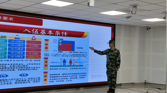 通过此次宣讲会,同学们详细了解到关于应征入伍的具体政策条件,强化了同学们助力强军兴军的责任感和携笔从戎保家卫国的意识,激发了同学们的爱国热情,让同学们从成长成才的角度深刻认识到了大学生参军入伍的重要意义。