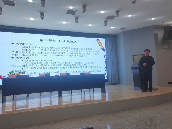 杨刚为2023届毕业生做了就业专题培训,从择业心态调整、三方协议及劳动合同签订、就业信息获取等方面进行了细致的解读和指导。