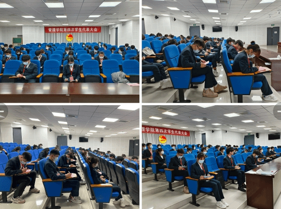 2022年11月23日中午12时,管理学院于实训楼C103会议室召开第四次学生代表大会。学院党委书记蔡若愚,党委副书记、院长韩传龙,党委副书记张增林,副院长宋徽出席本次大会,来自各班级、学生会、社团的35名正式代表、18名列席代表参加会议。大会由学院团委负责人孙杉老师主持。