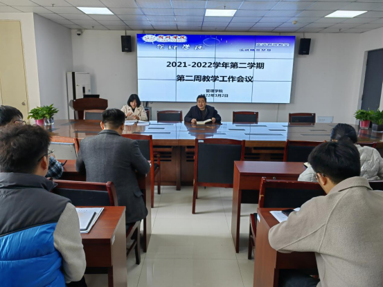 2022年3月2日中午13点,管理学院在实习实训楼C301会议室召开2021-2022学年第二学期第二周教学工作会议,副院长(教学)宋徽、各教研室主任、副主任、相关科级干部及教务人员参加会议,会议由院长韩传龙主持。