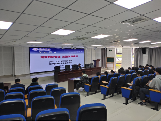 为加强期中教学管理,不断提高学院教育教学和管理工作的质量,及时了解教师和学生教与学的情况,学生自我管理和教学行政管理等相关工作中的亮点以及需要改进的问题,充分发挥学生参与教育教学管理的主动性和积极性,按照校、院相关文件精神及工作计划安排,管理学院于2022年4月6日13点准时在实习实训楼C103楼召开2021-2022学年第二学期期中教学信息员工作会议。2019、2020、2021级各班级信息员参会,院长韩传龙主持会议。会议主题为“规范教学管理,加强学风建设”。各班信息员围绕教学与管理、学风状况等方面在会前填写反馈表,学院进行汇总整理。