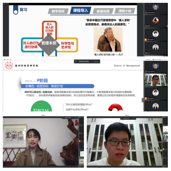 在此基础上,学院认真准备2022年学校课程思政教学竞赛,经过教研室推荐,学院初赛遴选,推荐两位新进教师陈语彰和孙汝甲参加学校决赛。学院还委派了李小芳和刘润喆两位多次获奖的老师,发扬管理学院“传帮带”优良传统,分别针对两名参赛教师的说课思路和教学设计进行一对一辅导,帮助他们的快速成长。