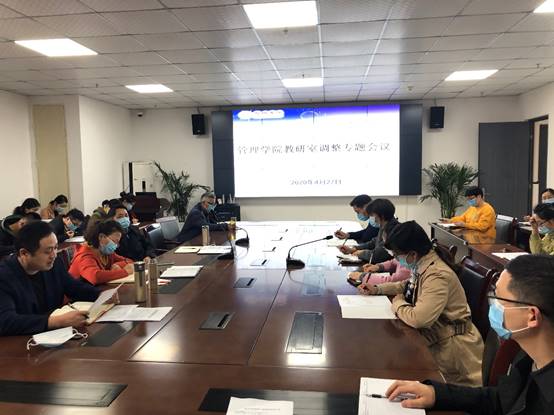 为进一步发挥教研室在教学改革中的基层组织作用,加强教研室建设,规范教研室管理,提高教育教学质量和应用型人才培养质量,管理学院于2020年4月27日上午在实习实训楼C301召开教研室调整专题会议。学院全体教师参加,会议由院长吴玲主持。