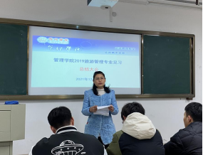 为了推进19级旅游管理专业见习活动的顺利开展,2021年12月6日上午10点在实训楼C211教室召开了管理学院2019级旅游管理专业见习大会,管理学院副院长宋徽、教师李小芳、杨利元及19级旅游管理班全体同学参加会议。