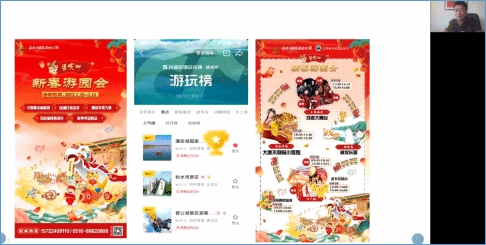 5月26日下午徐州潘安湖旅游发展有限公司总经理唐为亮与专业课教师李小芳共同开展专业核心课《旅游市场营销》讲授活动,活动采取线上线下同步的方式进行。